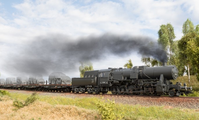 Um den großen Bedarf an Lokomotiven in den Kriegsjahren zu decken und den Mangel an Material und Arbeitskraft zu kompensieren, wurde aus der bereits vorhandenen Baureihe 50 eine deutlich vereinfachte Lokomotive entwickelt. Diese vereinfachte Lok der Baureihe 52 wurde in sehr hohen Stückzahlen gebaut und war zunächst nur für eine kurze Einsatzzeit ausgelegt. Nach dem Krieg blieben viele Lokomotiven in unterschiedlichen Ländern zurück, die sie teilweise noch bis in die 1980er Jahre planmäßig einsetzten. Bei einigen Museumsbahnen sind die Lokomotiven noch heute im Einsatz. Das Modell gibt eine solche vereinfachte Lok ohne Windleitbleche im typischen grauen Ursprungs-Lack wieder.